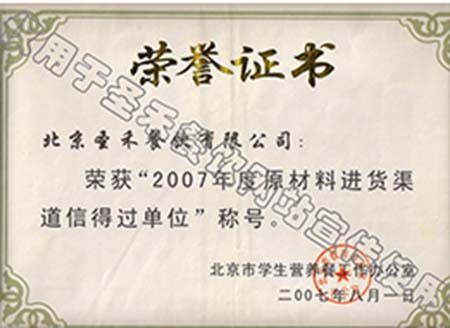 2007年度原材料进货渠道信得过单位